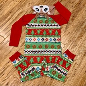 Absolutely iconic Christmas onesie from Justice!! 🦌 Lightweight but warm, so perfect for lounging or a pj day at school. Perfect condition other than some normal piling. Size 12 but see companion listing for size. 6/7. Zippered closure, hand warmer pockets, smiley reindeer hood, jogger style ankles so will never be too long. Please consider bundling for item discounts and combined shipping.