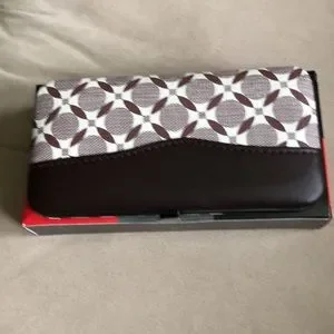 a deluxe brown and grey/white animal print design leather type exterior and a fancy