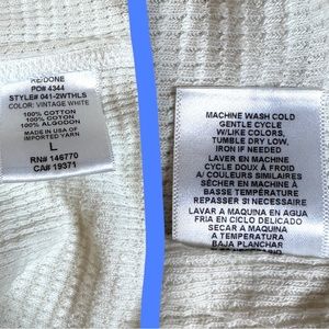 NWOT ⭐️RE/DONE Thermal Long Sleeve T-Shirt in Vintage White. Size Large 🧤❄️🧣