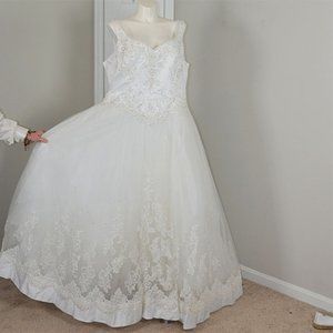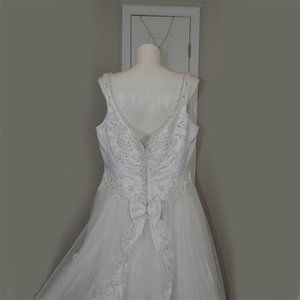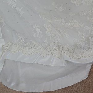 Purchased from A Curvy Bride in Dallas and tagged as “Specially Designed for A Curvy Bride”, but it is, in fact, a Mori Lee 3612. Dress has never been worn or altered. Gorgeous bead work and lace on the bodice, gown and hemline. Wonderful satin detailing down the back. Purchased for $1200. Please look at all photos and ask questions. I would love being able to give this wonderful dress a wedding to be the star of .. AFTER the BRIDE of course.