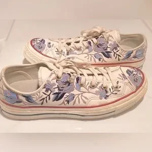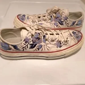 Converse Chuck Taylor 70 Low Parkway Floral Embroidery Men’s Size 6 or Women’s Size 8. Worn twice, not my style. Very little wear, just a little dusty from sitting around.
