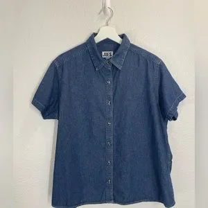 High quality short sleeve denim button up. Style with baggy jeans for a 90s look or layer under an oversized sweater for a more preppy vibe.