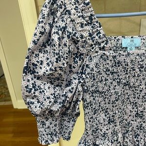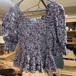 CeCe blue floral puff sleeve smocked peplum top. Size Medium. Worn 1 time. Like brand new. Excellent condition.