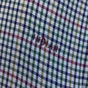 men’s plaid bomber harrington jacket L zippered Indian brand lined tan red blue