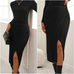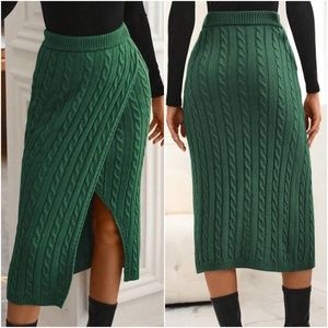 014 Cable Knit Split Thigh Ribbed Midi Skirt