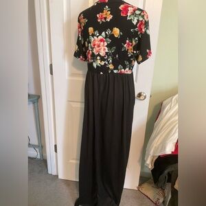 Short sleeve floral top empire waist maxi dress, that has elastic in the waist.