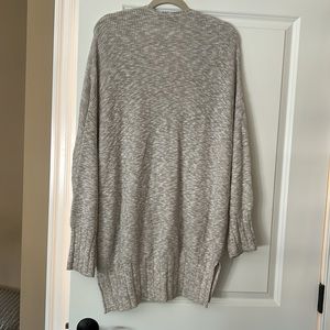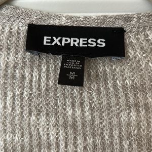 Oversized EXPRESS cardigan sweater. It’s a little different shaped as front sides angle slightly upward at bottom. Size medium but could fit larger sizes too. Please check measurements. Approximately 36 inches long taken laying flat down the back. Worn only a few times. Smoke free home.