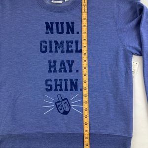 Doe Womens Blue Dreidel Holiday Hanukkah Nun Gimel Hay Shin Sweatshirt XL