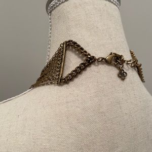 11 strands of various pinks, corals and gold tone beads. Adjustable length. Stella clover insignia charm.