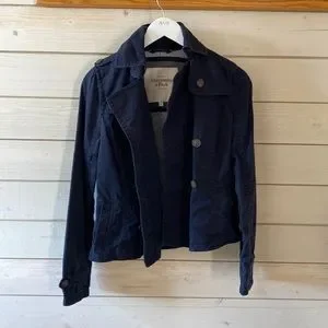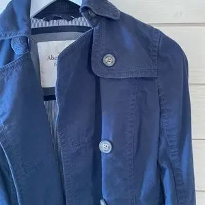 Navy jacket with buttons. Perfect for fall or winter layering. Brand Abercrombie and Fitch. Size Xs