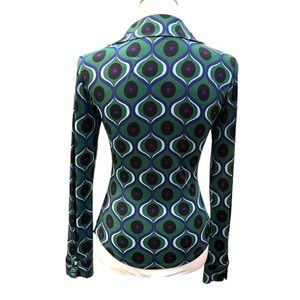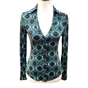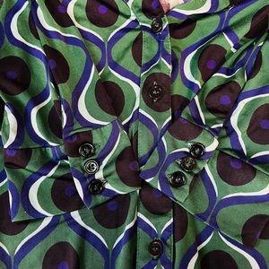 Zara Pattern Button Down Shirt Green Blue Black Size Small