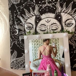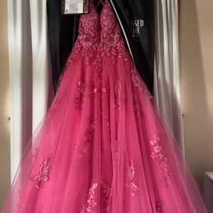 This prom dress is so beautiful and definitely made me feel like a princess! It’s in great condition, nothing wrong with it. Size 0
