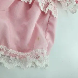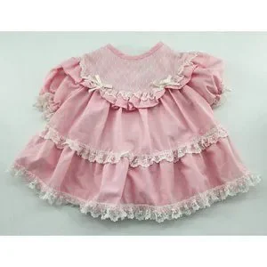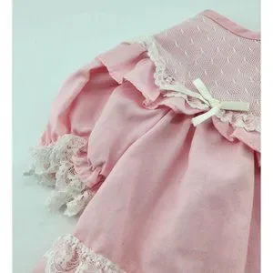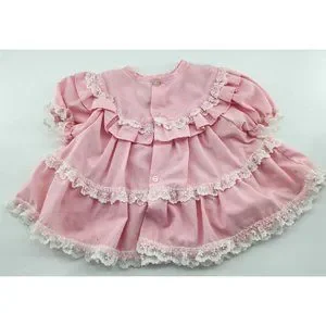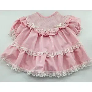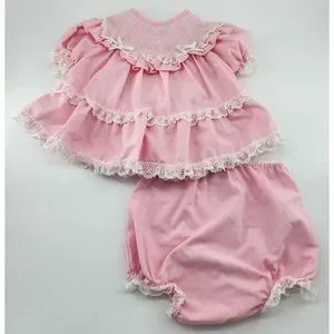 Vtg Baby Girls Pink Tiered Ruffle White Lace Trim Dress/Bloomers RN 50255 Sz 18M