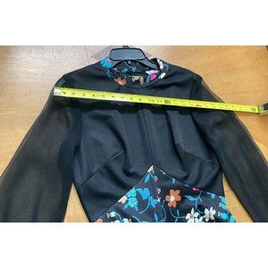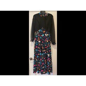 Sears Fashions 1970s Dress Maxi Black Floral Sheer Sleeve High Neck 14 Vintage