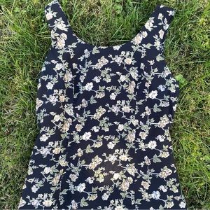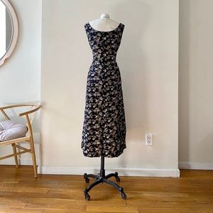 Vintage 90s black sleeveless midi length dress with an earth toned floral pattern. Features a scoop neck and back. Made from soft rayon fabric. Excellent condition. Fits like a M/L, check out the measurements below!
