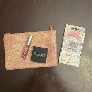 Pink and Gold Ipsy make up bag with samples. Eyeshadow duo, Matte lipstick, nails. All new, comes from a smoke free home.