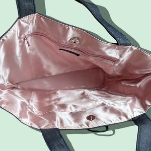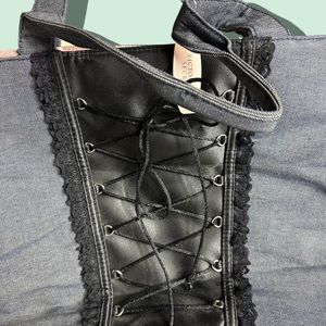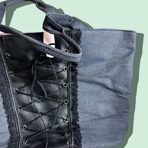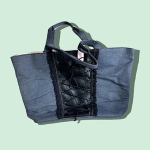 NWT Victoria’s Secret Denim Black Lace Corset Pink Silk Lined Tote Bag