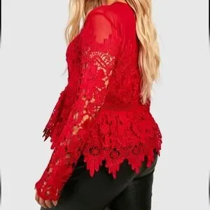 Boohoo red peplum top