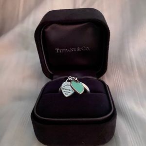 MINT CONDITION Return to Tiffany Mini Double Heart Blue Green Enamel Ring! RARE VHTF ESPECIALLY A SIZE 7!!! There are NONE. Since itโs over $500 it goes To Posh for Rest assured Authentication.THIS IS A COLLECTORS PIECE CIRCA. Approximately 2007. AND WORTH THE VALUE CAN BE SIZED RING BOX AND TIFFANY BOX INCLUDED