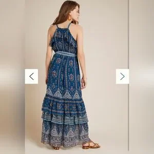 Anthropologie Sasha Ruffled Blue Maxi Dress SZ S