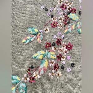 •beautiful detailed floral embroidery with tiny beaded work in the flowers, back, front, & arms.