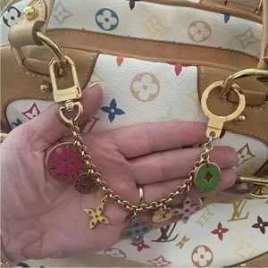 Gorgeous multicolor bag charm by Louis Vuitton. Double sided with different colors on each side of the charms.