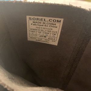 Worn once, practically new condition. Sorel Major leather boots. Adjustable side buckles. Easy to slip on and off.