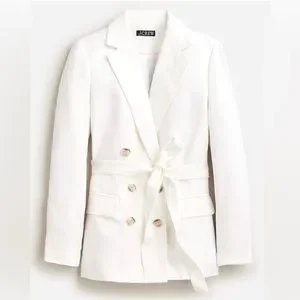 double-breasted style, with a tie at the waist that's relaxed and elevated all at once. Plus, it's made in Chelsea linen-cupro blend, our drapey, smooth and lightweight new fabric that's perfect for your work and life style during the warmer months. A luxe blend of two of our favorite materials, this fabric is just as smooth as - and way more durable than - silk, machine washable and made from recycled cotton linter at a zero-waste facility.