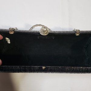 Kate Landry Black Textured Barrel Evening Mini Hand Bag Clutch Purse Chain