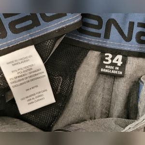 Athletic flat front shorts w/ elastic comfort waistband, gray, size 34, 9" inseam.