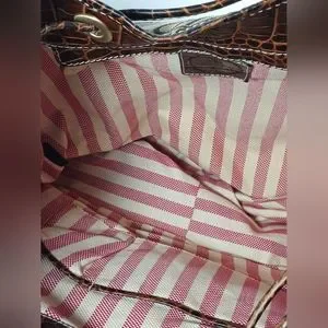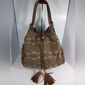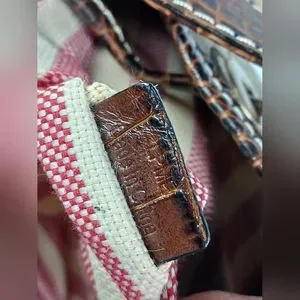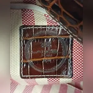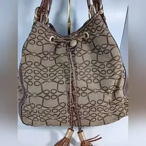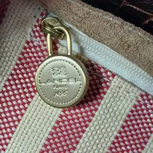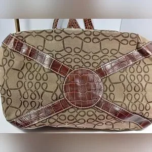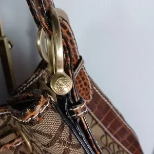Lancel Canvas Monogram / leather brown crocodile bucket handbag