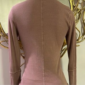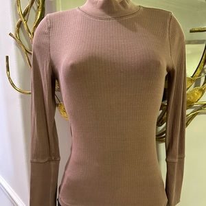 A very light brown washed color, with ribbed detail. Fork fitting tank top, with a mock neck turtle neck look. Worn 3-4x max. EUC