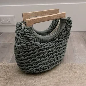 Crochet style bag w/ wood handles