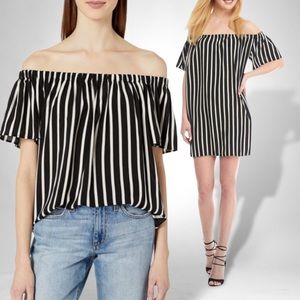French Connection Vertical Stripe Off the Shoulder Tunic Top and/or Mini Dress