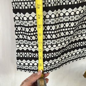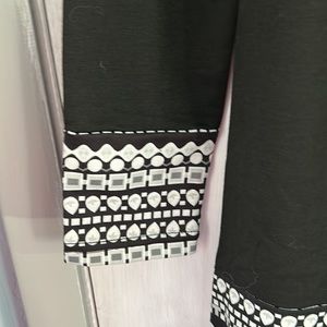 Lightweight black and white dress. Size small. Geometric white, black and grey shapes accent the sleeves and bottom. Never worn. Smoke free home. Offers welcome!