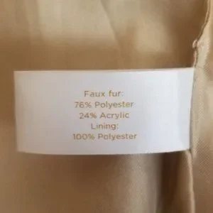 Fabric: FAUX FUR 76% polyester 24% acrylic LINING 100% polyester