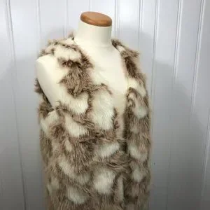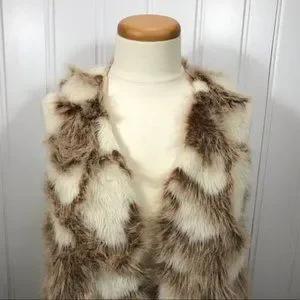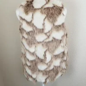 Faux fur vest in marbled neutral tan cream white and brown colors