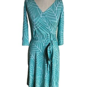 Patty Boutik Sea Mist Green and White Wrap a around Dress. Size Small