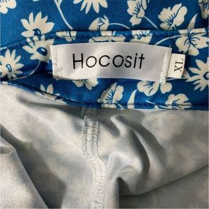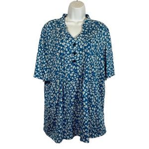 Hocosit Size XL Blouse Pleated Button Front Floral Print Short Ruffle Sleeve