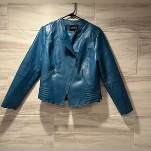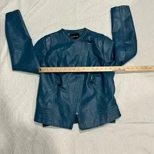 Chouyatou Women Casual Collarless Cropped Pu Leather Biker Jacket Size Medium