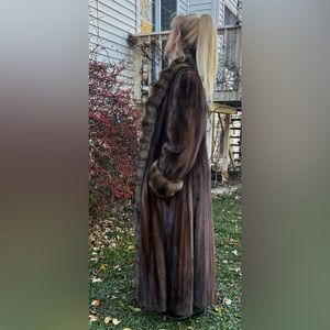 Beautiful Oscar de la Renta Sable Trimmed Tuxedo Mink Coat Extra Long