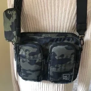 NWT IHKWIP Camo Nylon Crossbody w/Detachable Accessory Pouch