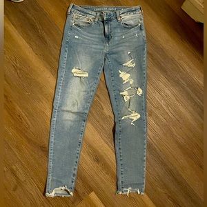 AE NWOT size 10 stretch distressed jeans, Raw hem. Super cute. Ships same day, bundle to save. No returns no cancellations.