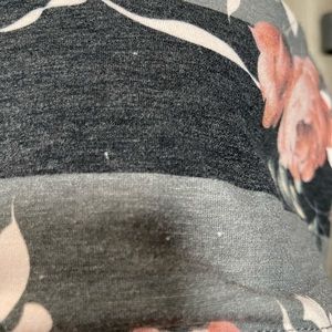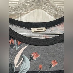Viamor Sweatshirt Dress Gray Long Sleeves Elbow Patches & Floral Striped patter