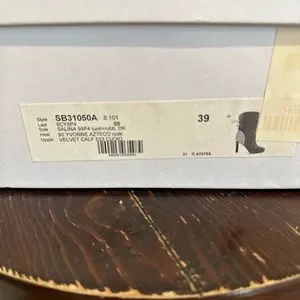 Leather with back ties. Beautiful color leather. Stacked wooden heel. Worn once. Sent with box and dustbag. Lovely!