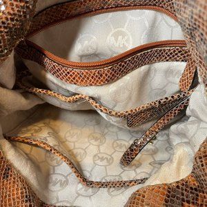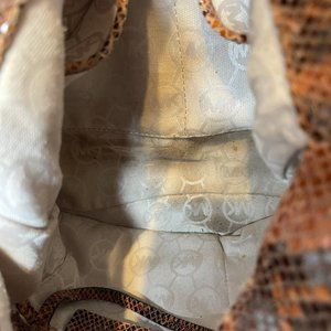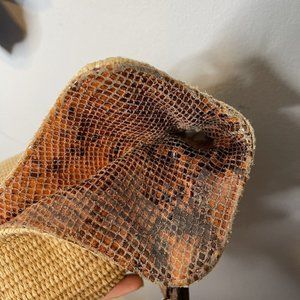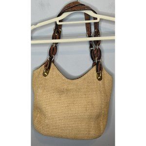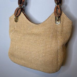 MICHAEL KORS STRAW SHOULDER BAG W/ REPTILE LEATHER TRIM GOLD TONE HARDWARE Boho