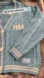 Light blue button down cardigan with cream stripes featuring