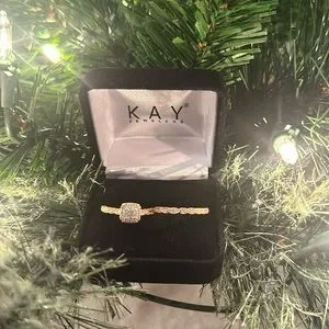 Added pic with description and not the same rings, but it’s a round cut not princess cut and includes wedding band. Also the braiding is a little different than the stock photo.