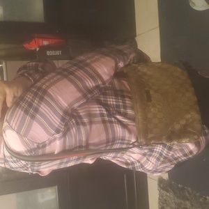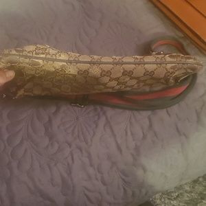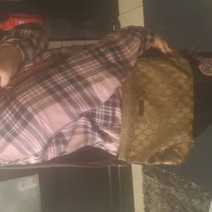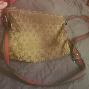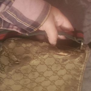 Vintage Authentic Gucci Monogram Bag, made in Italy.. Early 1990s-2000s I believe its almost my age maybe 10 years younger. Inside the bag it has 1 small pocket inside & on the other inside has a zip pocket and its fully functional inside zipper; outside zips leather fell off the zipper pull but it still zips open & close. The Straps need to be cleaned to bring out her beautiful red & green colors there also a little folding on the straps but steam should take right out. Also to mention there's slight tearing on sides & corners of the bag as well as through the outside canvas. Inside no holes or stains very clean, smell nothing that can't come out with a good clean. Could use as is or take for the straps FYI (I've seen just the gucci straps by itself sell for literally hundreds) or other parts... Any questions feel free to ask & open to many offers, please don't low ball. Everything is as is No Refunds all my stuff also comes from very reliable designer dealers & authenticator which I'd be happy to share with. Thanks for taking a look please share out also and I will share your closets also.