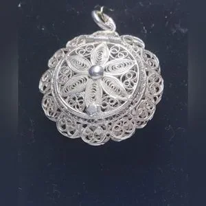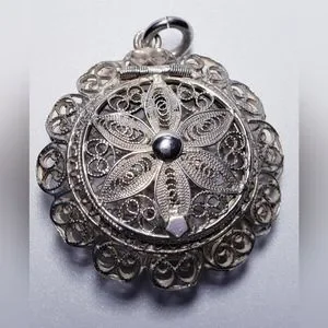 This Awesome Turkish Filigree Locket Pendant can fit small rosary or a special picture of a loved one..This Pendant is a one-of-a-kind fantastic piece of jewelry of all time can be reversible and sure to get you noticed with its uniqueness. It measures 20.44mm / 0.80" diameter.